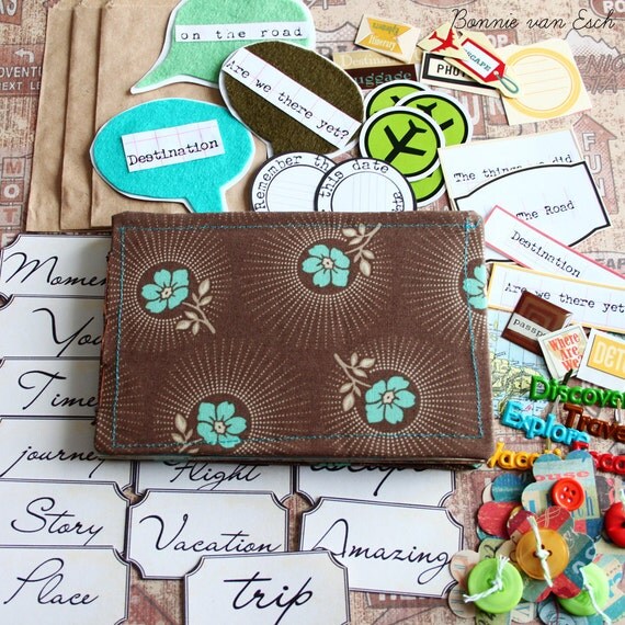 Coptic-Stitch Bound Mini Travel Journal, comes with all sorts of embellishments to add to your Journal.
