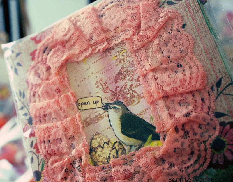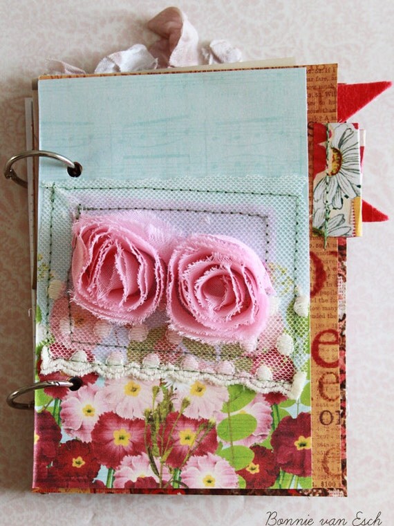 Ring-Bound Mini Journal, packed with embellishments, pockets, tags, ribbon etc on each page.