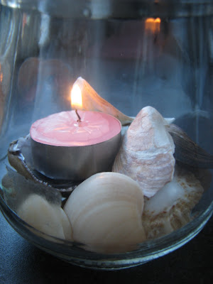 Just wanted to share these photos I took today too of our shells we picked up off the beach on holiday. I cleaned them-actually my daughter did, washed them lovingly with strawberry soap! And then had an idea to put the pebbles and shells into glass jars and use them as tea-light burners.